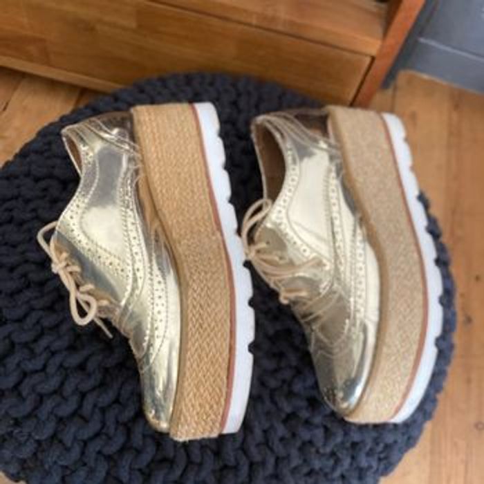 Chaussures Derbies Richelieu doré semelles compensées 39 Fullah Sugah - photo numéro 3