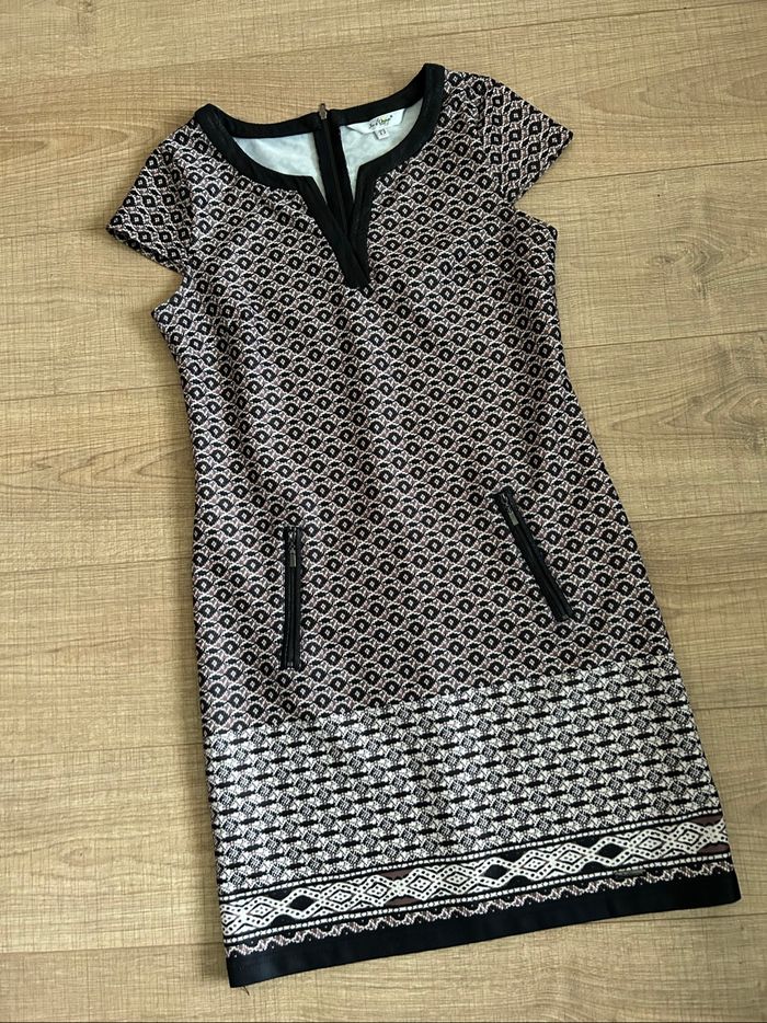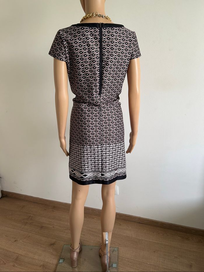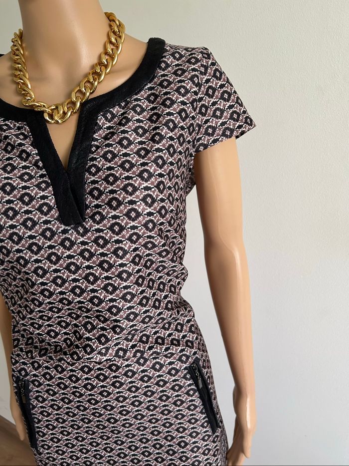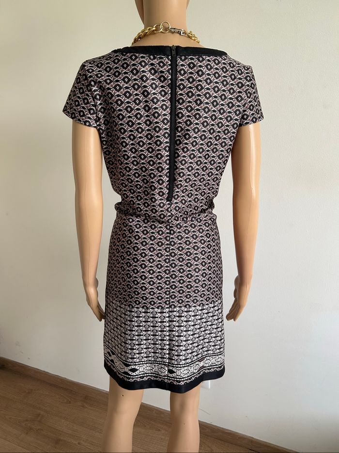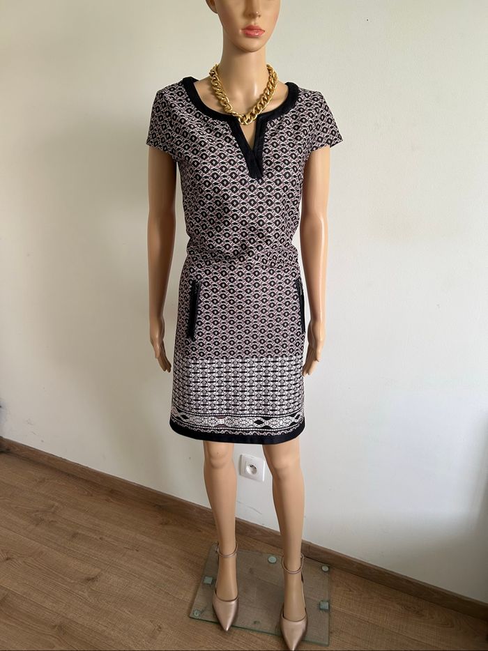 Jolie robe imprimée à manches courtes, de marque Jus d’Orange. Fermeture dans le dos. Taille 3 qui correspond à du 40. Jamais portée, état neuf. aisselle à aisselle 48 cms épaule à épaule 38 cms taille 43 cms longueur depuis épaule 91 cms 96% polyester et 4% elasthanne
