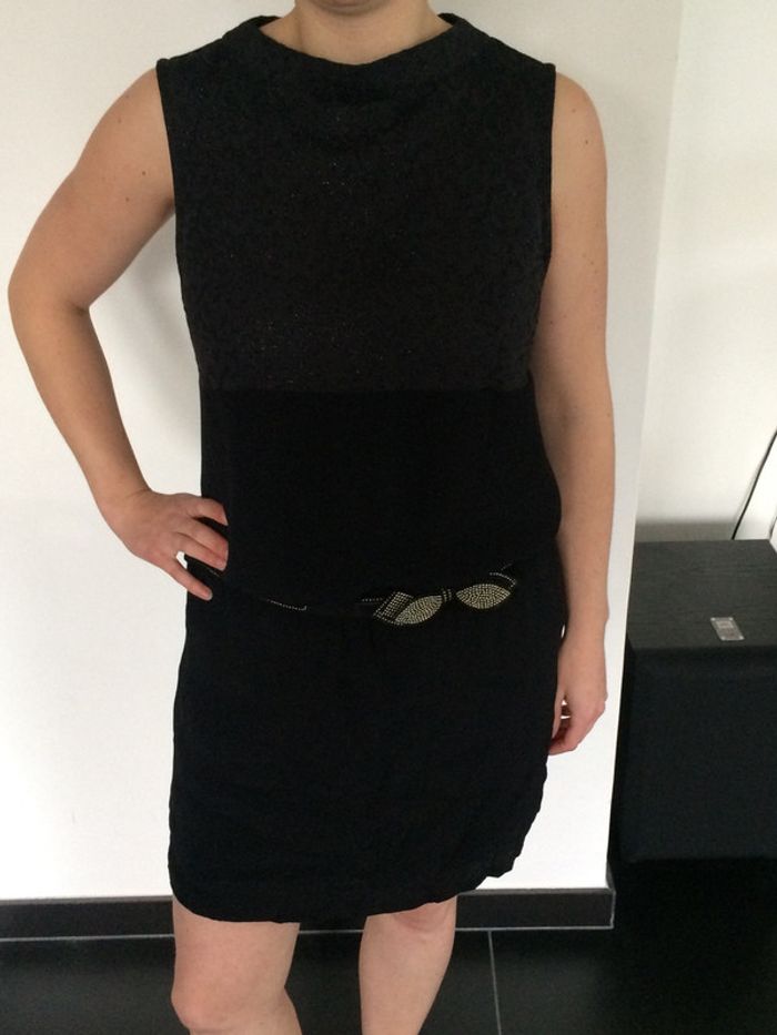 Robe noire sans manche avec petit col. Broderie sur le haut #fredouille62femme38