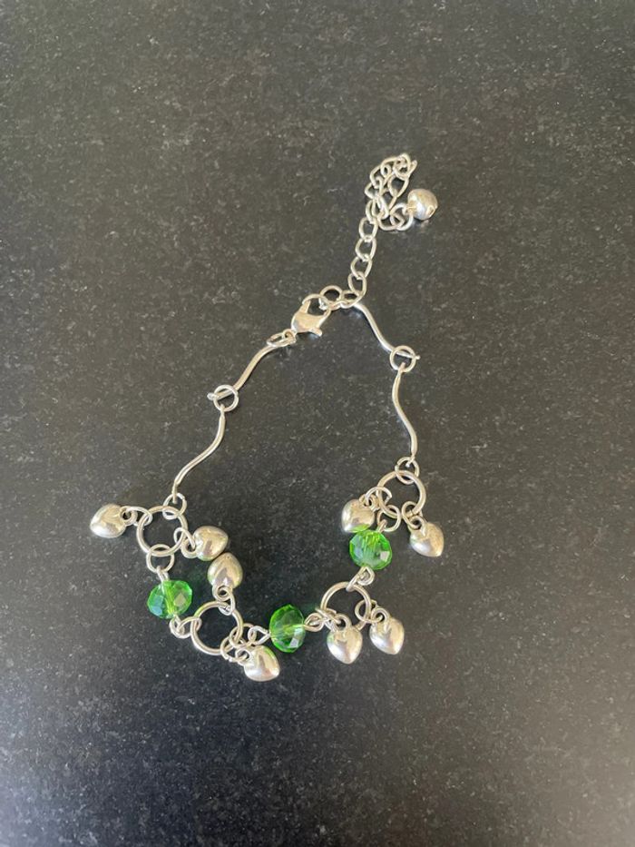 Bracelet coeurs et boules vertes - photo numéro 1