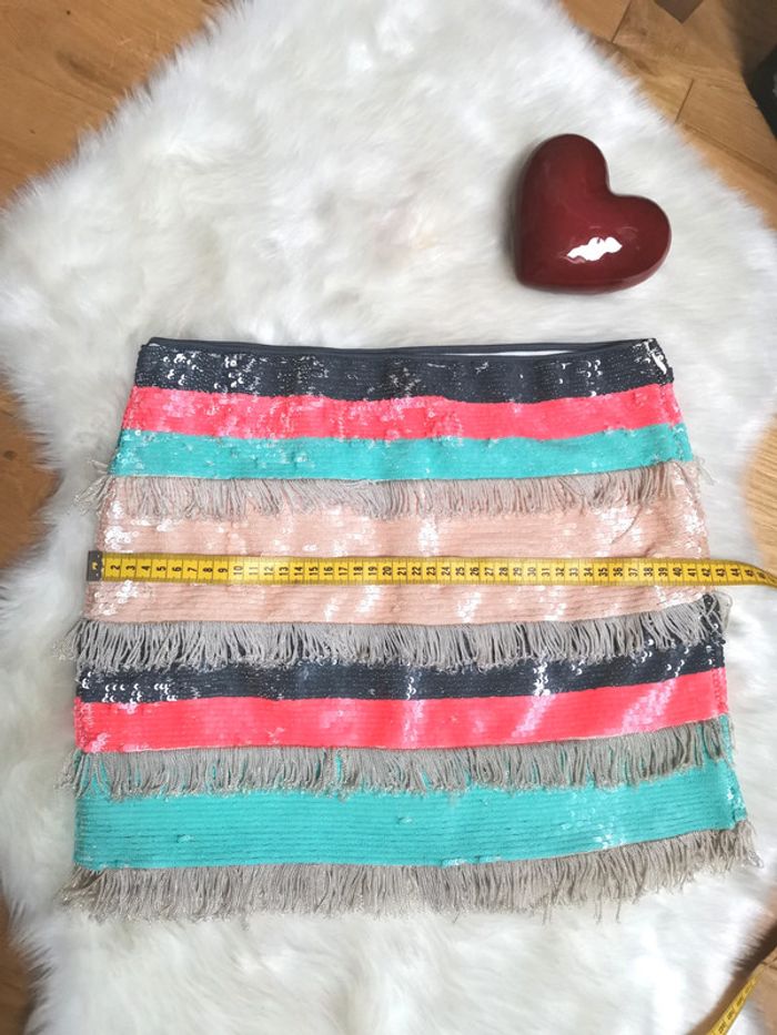 Très belle jupe Zara et fraîche avec des sequins colorés aux couleurs d'été Taille S #jupe #minijupe #jupeàsequins #tailles #zara #jupezara #petitejupezara #jupedétézara