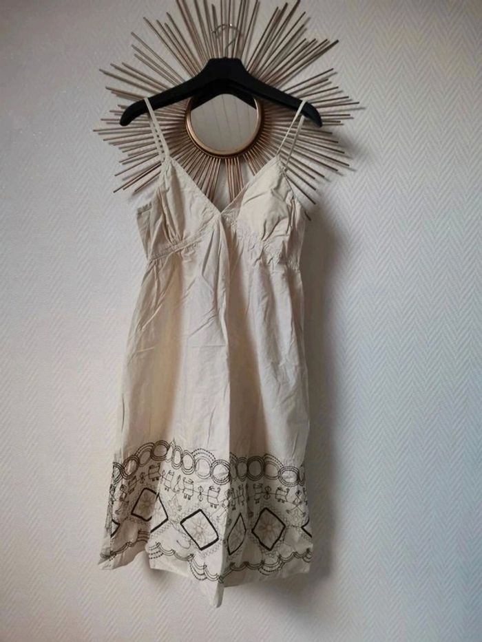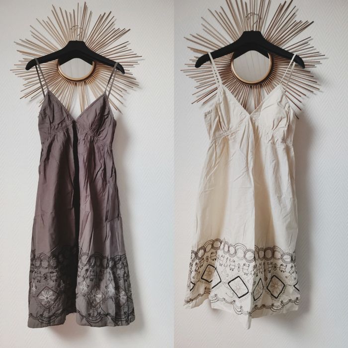 Lot de 2 robes midi en 100% coton, brodée en bas avec fine bretelle réglable 1 en couleur taupe 1 en couleur crème Les 2 robes pour 25€ #robedete #robe #robemidi