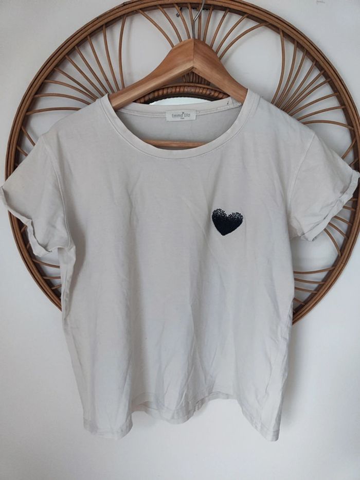 Tee shirt blanc coeur Emma et ella Taille S Acheté sur le site easy clothes 100% coton