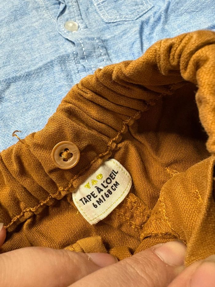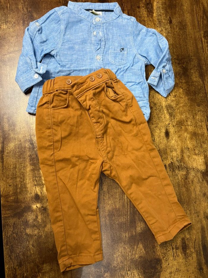 Ensemble tape à l’œil Avec pantalon couleur moutarde/ marron et chemise bleu clair Très bon état 🛍️D’autres articles 6m en vente: #orlanecollerie6mois