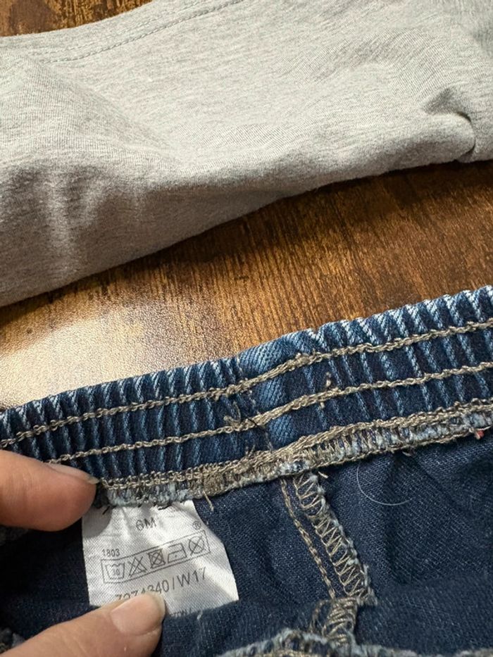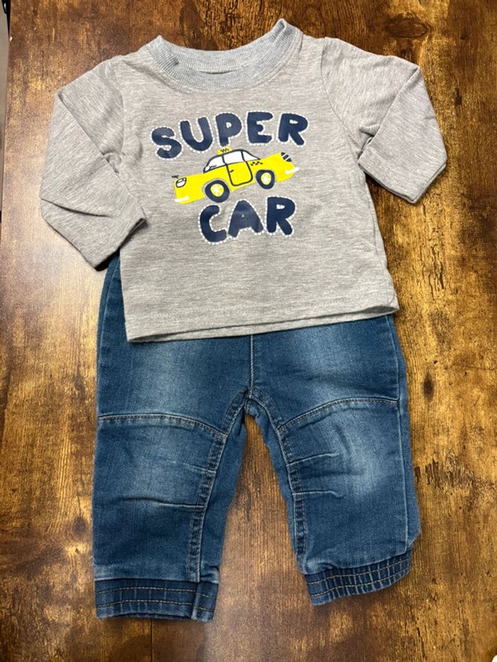 Ensemble avec jean bleu taille élastique et tee shirt épais gris avec motif voiture Très bon état 🛍️D’autres articles 6m en vente: #orlanecollerie6mois