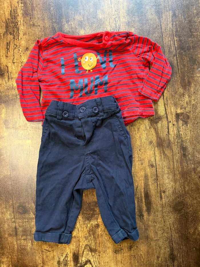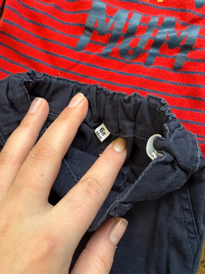 Ensemble avec pantalon bleu marine et tee shirt manches longues à rayures Très bon état 🛍️D’autres articles 6m en vente: #orlanecollerie6mois