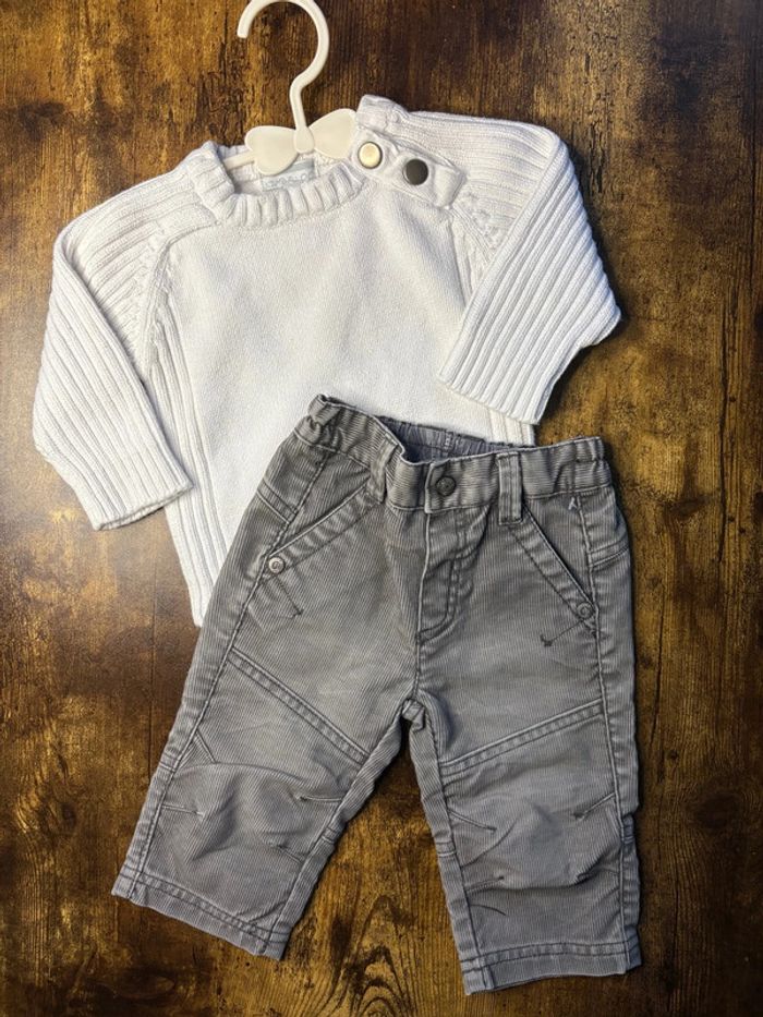 Ensemble avec pull blanc et jean gris foncé Obaibi Très bon état 🛍️D’autres articles 6m en vente: #orlanecollerie6mois
