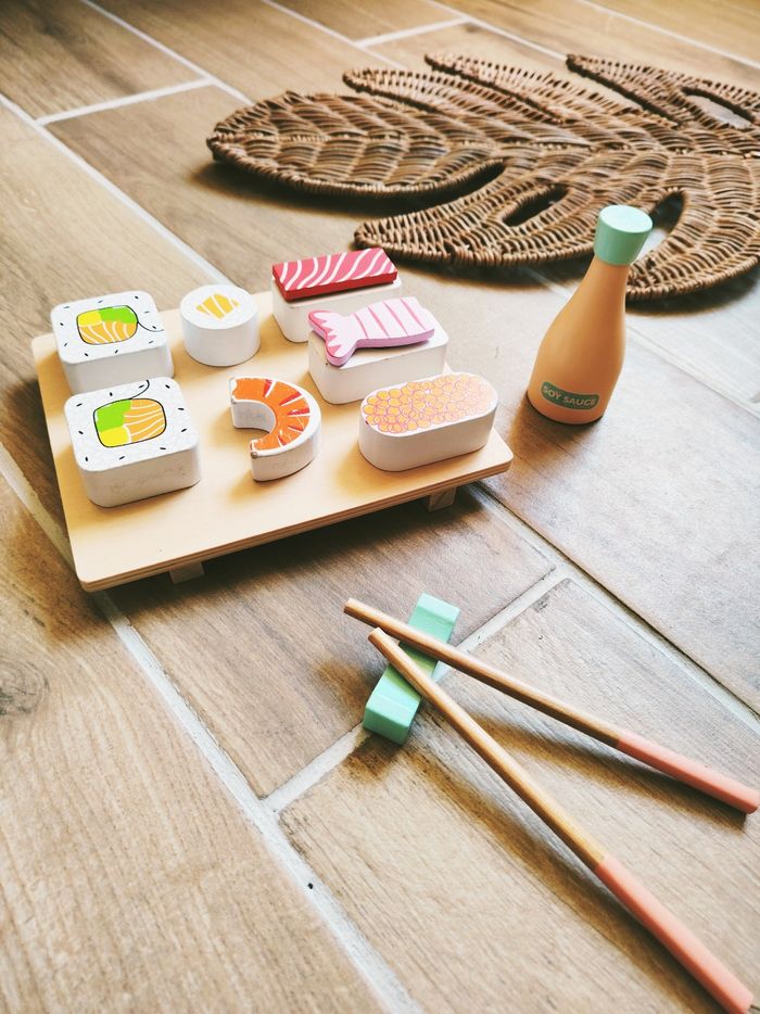🍥Dinette plateau japonais avec sushis à scratch makis en bois JB816