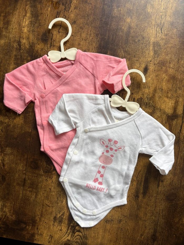 Lot de 2 bodys manches longues Ouverture devant Motif girafe et uni rose 🛍️D’autres articles 1mois: #orlanecollerie1mois