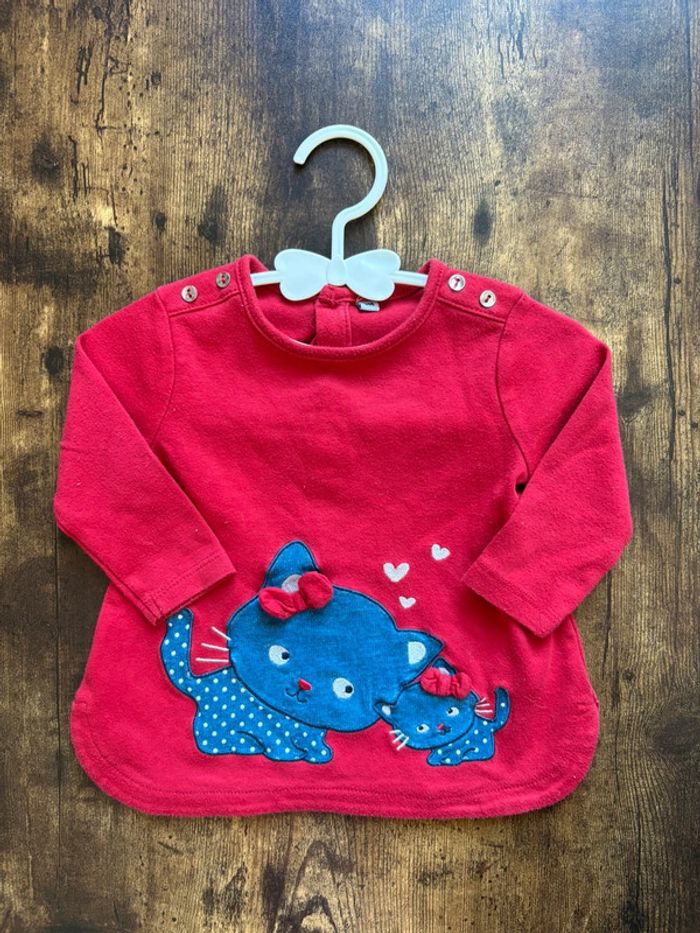 Haut manches longues Rouge motif chat 🛍️D’autres articles 6m en vente: #orlanecollerie6mois