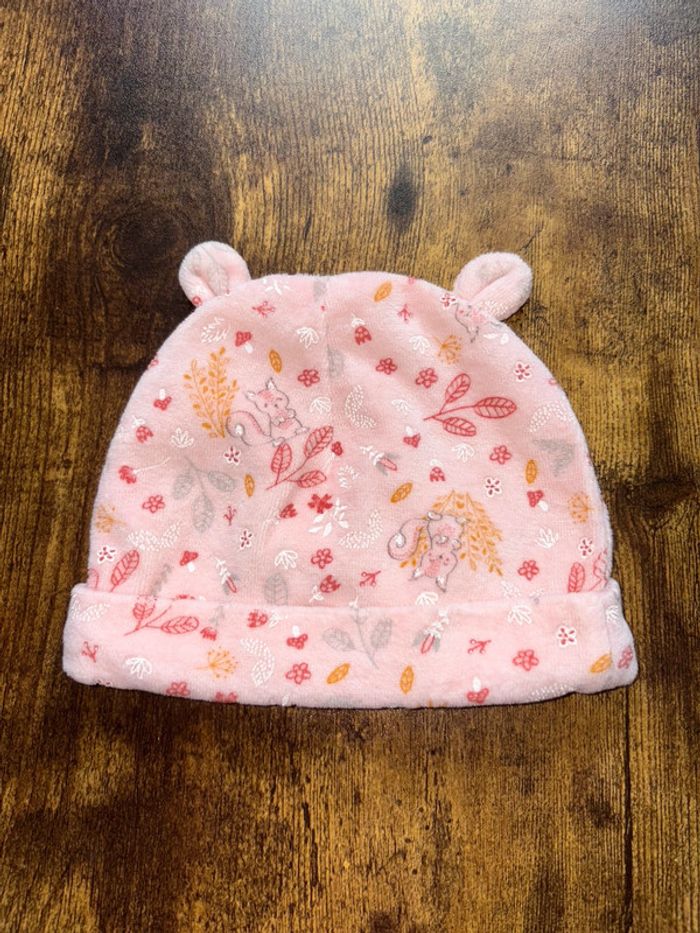 Bonnet rose pale à motif Avec des écureuils et feuillages Neuf 🛍️D’autres articles 3m en vente: #orlanecollerie3mois