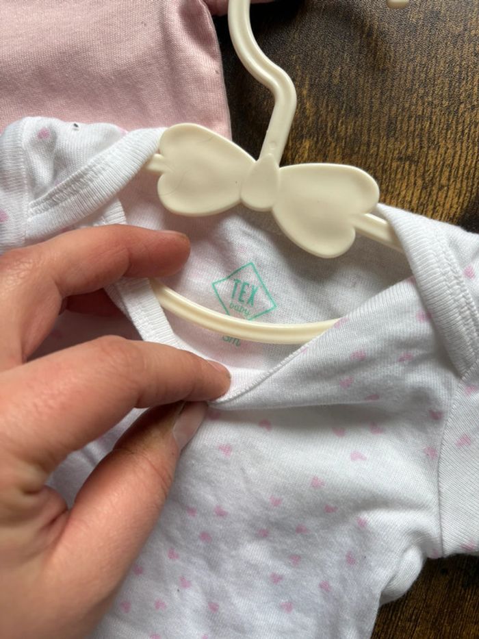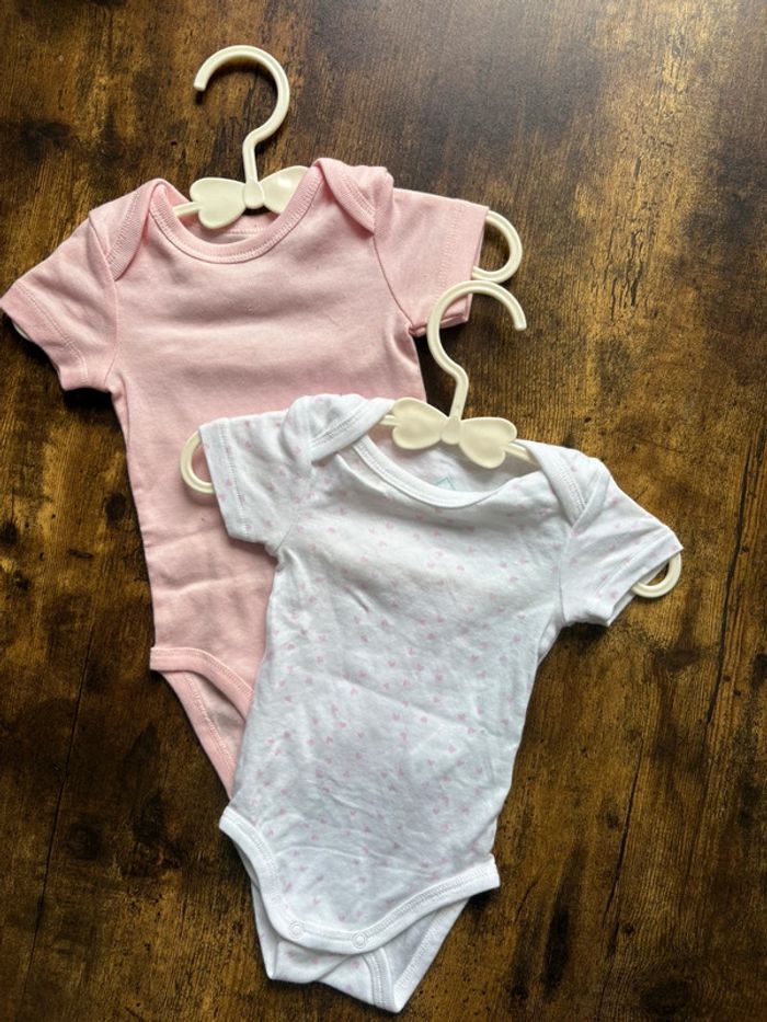 Lot de 2 bodys à manches courtes Blanc avec des cœurs et rose avec 2 micro trous(voir photo) du à l’étiquette Sinon jamais porté 🛍️D’autres articles 3m en vente: #orlanecollerie3mois