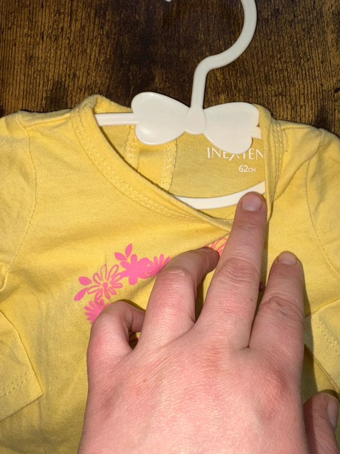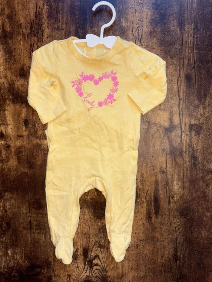 Grenouillère en coton Jaune avec cœur rose Très bon état 🛍️D’autres articles 3m en vente: #orlanecollerie3mois