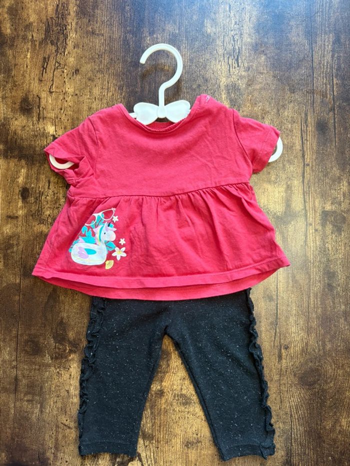 Ensemble avec tee shirt rose motif licorne et legging Orchestra avec petites bouloches 🛍️D’autres articles 3m en vente: #orlanecollerie3mois