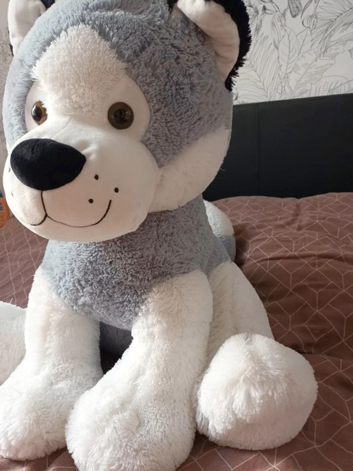 Grosse peluche chien gris et blanc Neuf 63cm de haut 🛍️D’autres peluches /jouets en vente: #orlanecolleriebb