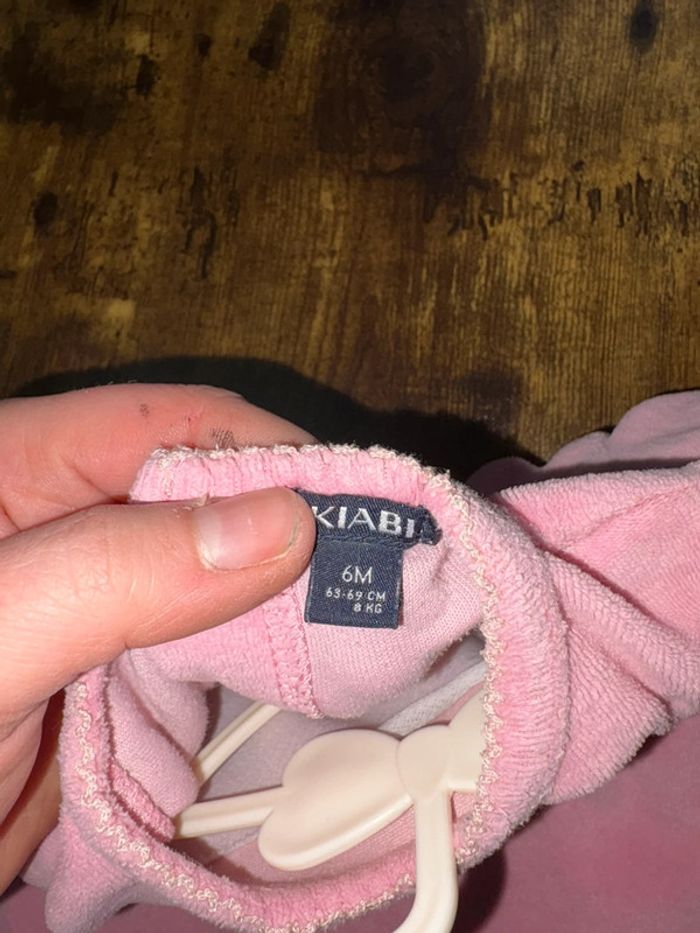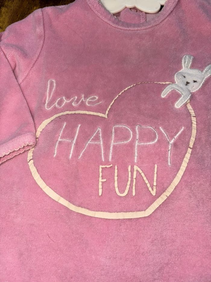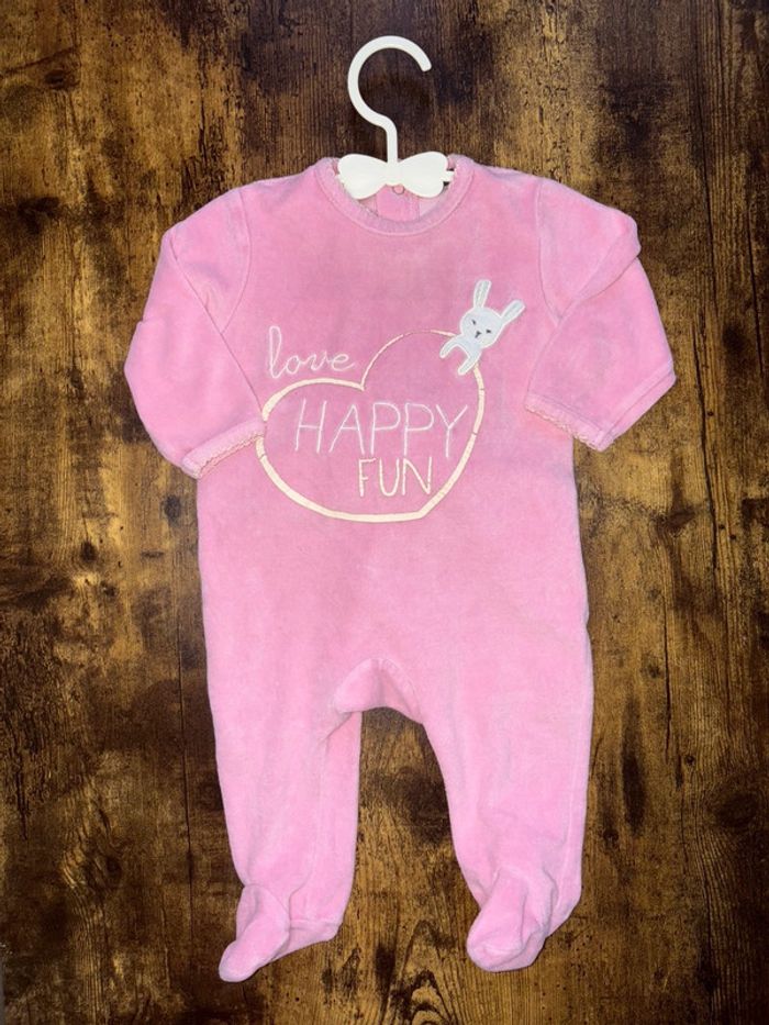 Grenouillère 6mois Rose avec inscription et motif lapin Le cœur a un peu jauni mais sinon pas de tache sur le pyjama 🛍️D’autres vêtements 6m en vente: #orlanecollerie6mois