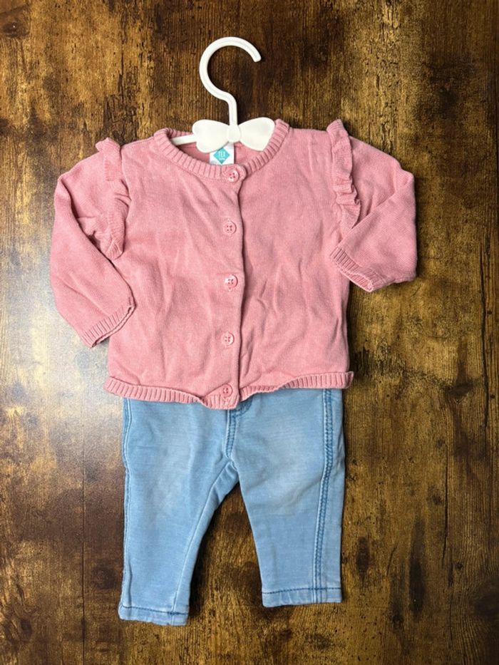 Ensemble avec gilet à boutons rose et legging effet jean Très bon état 🛍️D’autres vêtements 3m en vente: #orlanecollerie3mois