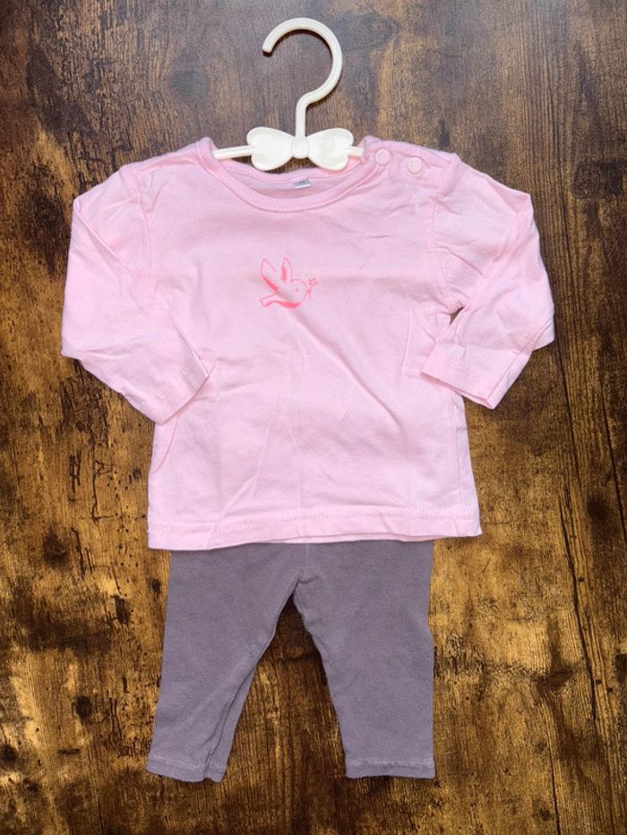 Ensemble 3 mois Legging marron et haut manches longues rose à motif oiseau 🛍️D’autres vêtements 3m en vente: #orlanecollerie3mois