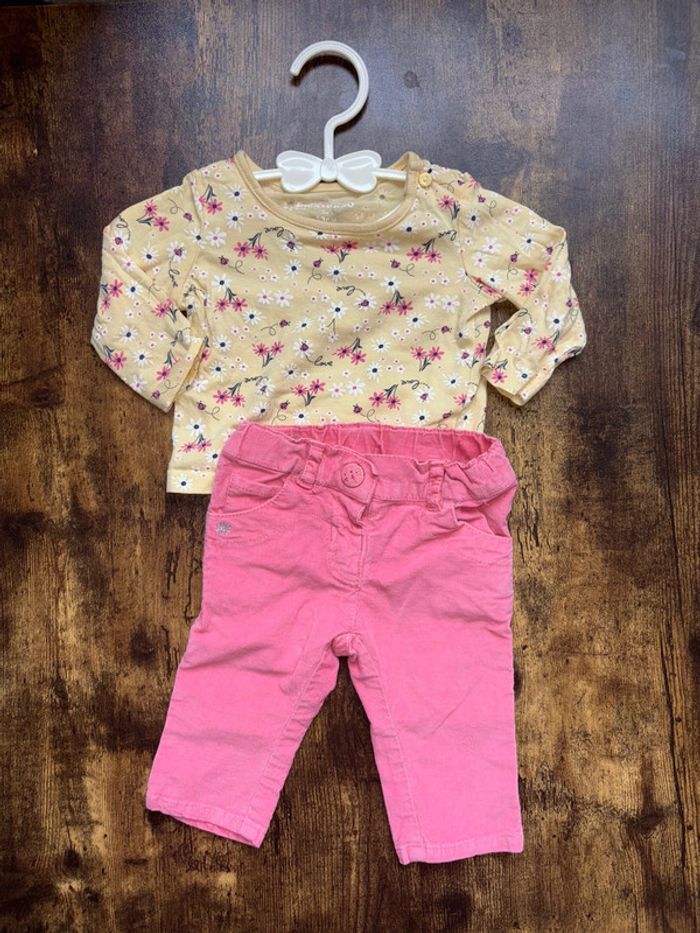 Ensemble avec jean rose et tee shirt manches longues jaune à fleurs Très bon état 🛍️D’autres vêtements 3m en vente: #orlanecollerie3mois
