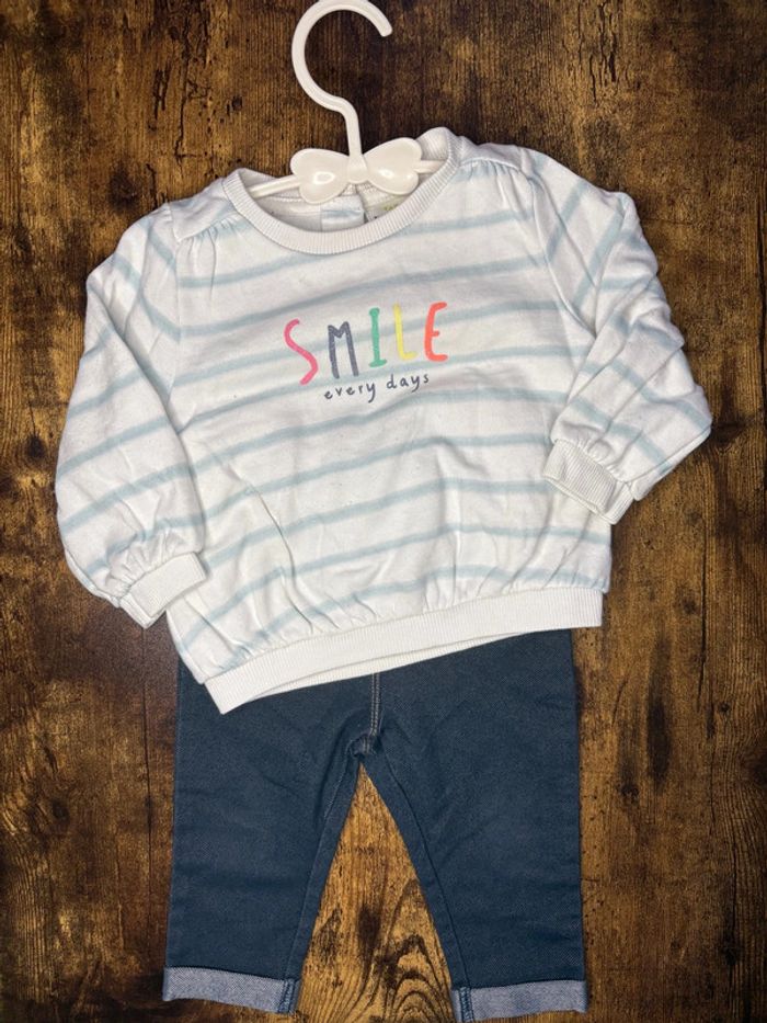Ensemble fille 9moiS Sweat tape à l’œil (petite bouloche voir photo) + legging style jean bleu foncé Kiabi Très bon état 🛍️D’autres vêtements 9m en vente: #orlanecollerie9mois