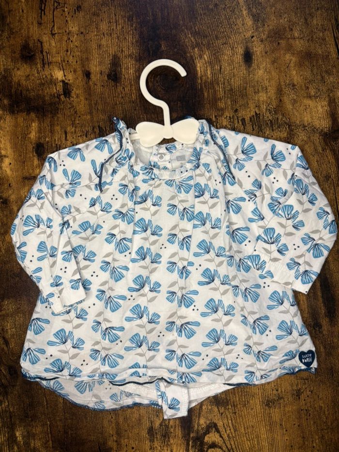 Haut manches longues Avec fleurs bleu Sucre d’orge 🛍️D’autres vêtements 9m en vente: #orlanecollerie9mois