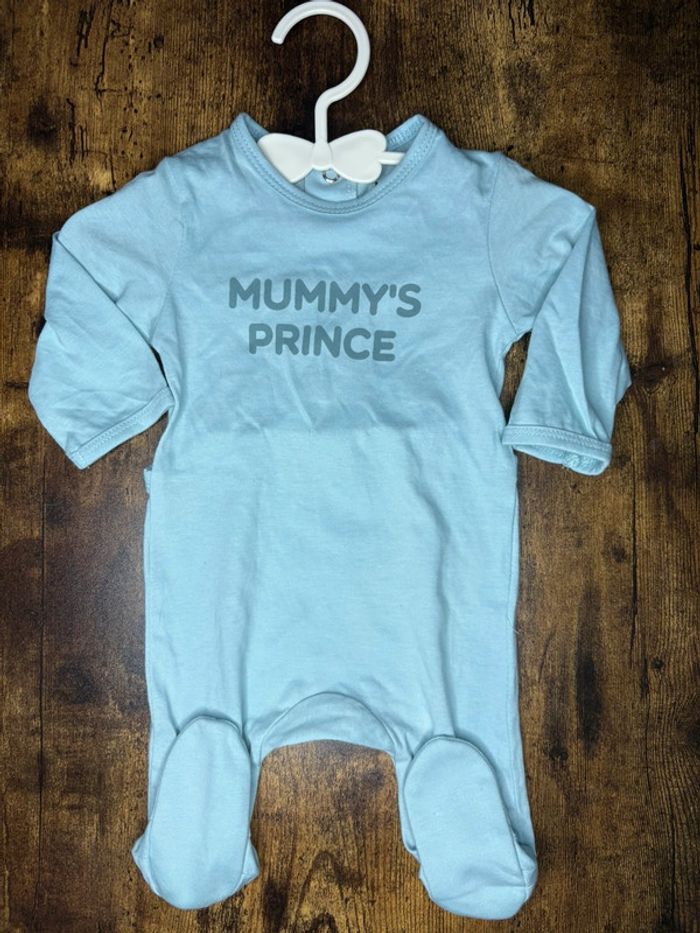 Grenouillère Kiabi Bleu clair Mummy’s prince 🛍️D’autres vêtements 1m en vente: #orlanecollerie1mois