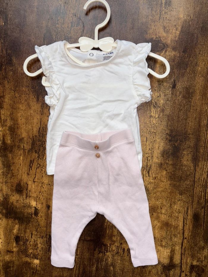 Ensemble Kiabi 3mois Legging rose pale et tee shirt manches courtes blanc 🛍️D’autres vêtements 3m en vente: #orlanecollerie3mois