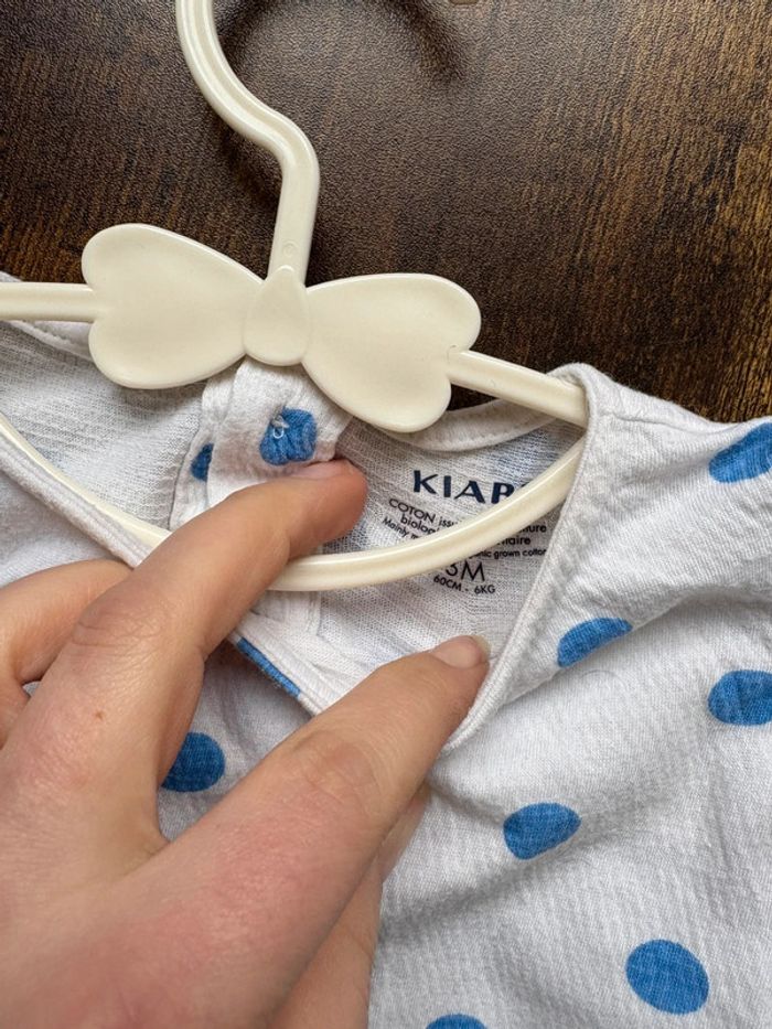 TEE shirt manches courtes Blanc et pois bleu Kiabi 🛍️D’autres vêtements 3m en vente: #orlanecollerie3mois