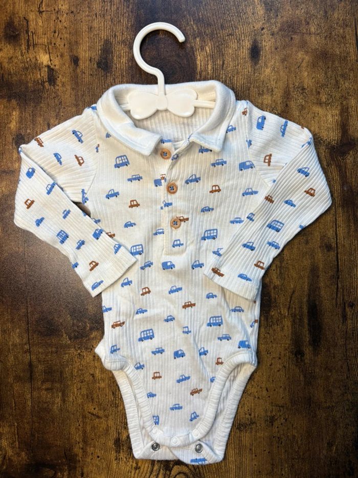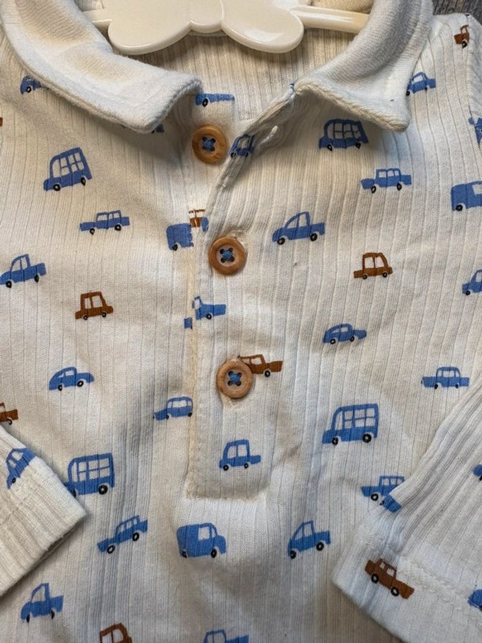 Body manches longues avec col effet polo Motif voiture Boutchou 🛍️D’autres vêtements 9m en vente: #orlanecollerie9mois