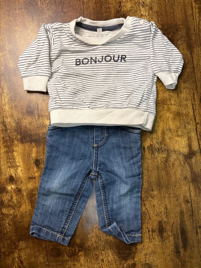 Ensemble jean Orchestra + Sweat à rayures 3mois 🛍️D’autres vêtements 3m en vente: #orlanecollerie3mois