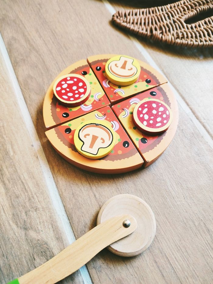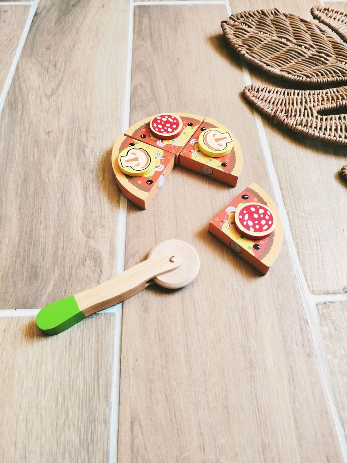 🍕Dinette parts de pizza à scratch avec roulette en bois marque New classic toys JB1274