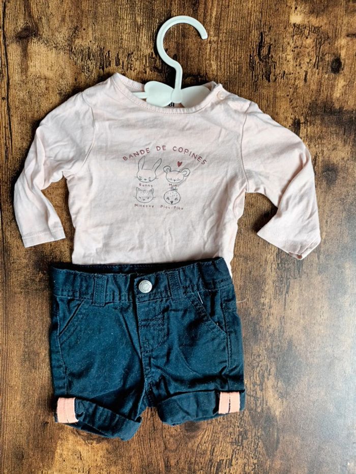 Ensemble haut manches longues + short 3mois Idéal à porter avec des collants Très bon état 🛍️D’autres vêtements 3m en vente : #orlanecollerie3mois