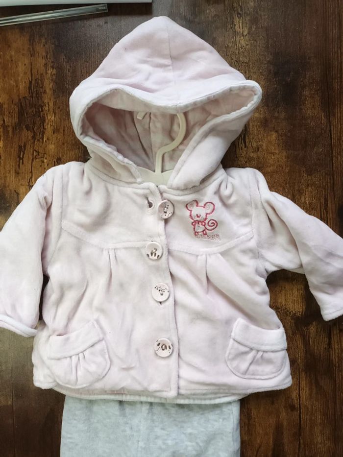 Ensemble pantalon polaire avec pieds + Veste chaude avec capuche 1mois, en très bon état 🛍 D'autres vêtements 1mois en vente : #orlanecollerie1mois