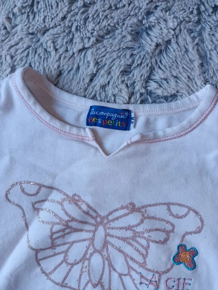 Tee shirt manches courtes Blanc avec motif papillon 4ans 🛍 D'autres vêtements taille 4ans en vente : #orlanecollerie4A