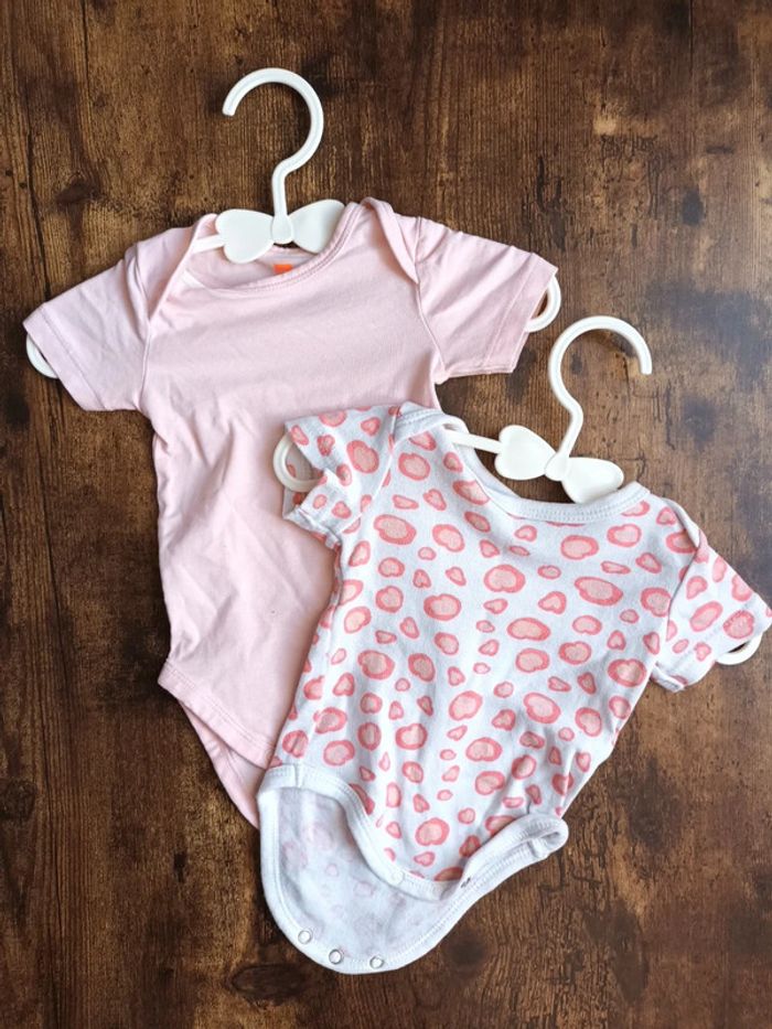 Lot de 2 bodys manches courtes 1mois Un rose et un rose avec des cœurs 🛍 D'autres vêtements 1 mois en vente : #orlanecollerie1mois