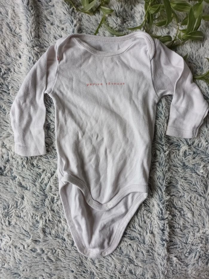 Body à manches longues Blanc avec inscription "petite rêveuse " Très bon état, 3mois 🛍 D'autres vêtements 3 mois en vente : #orlanecollerie3mois