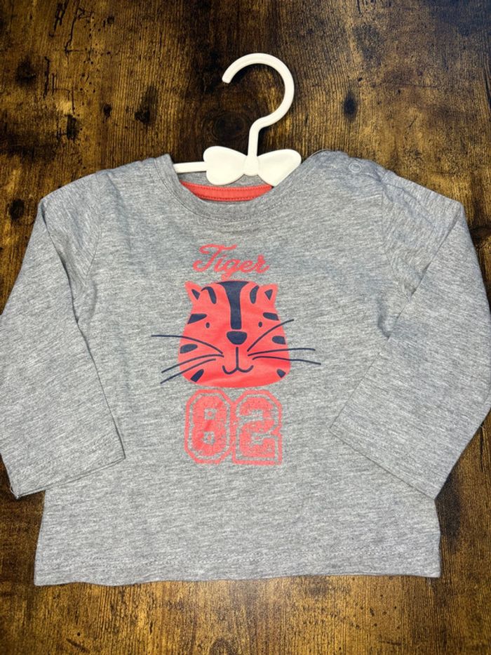 Tee shirt manches longues Gris avec tête de tigre Très bon état 🛍️D’autres vêtements 6m en vente: #orlanecollerie6mois
