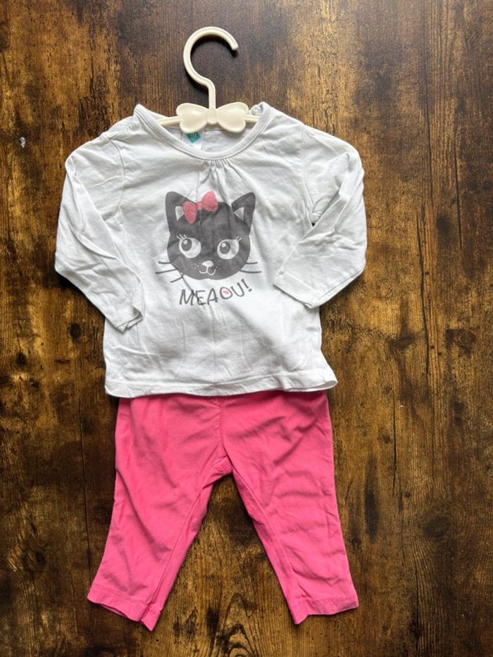 Ensemble avec bas rose Vertbaudet + tee shirt manches longues motif chat (sans marque) Très bon état 🛍️D’autres vêtements 6m en vente: #orlanecollerie6mois