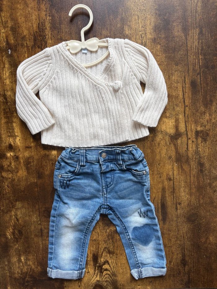 Ensemble gilet crème / blanc cassé et jean bleu Gemo Très bon état 🛍️D’autres vêtements 6m en vente: #orlanecollerie6mois