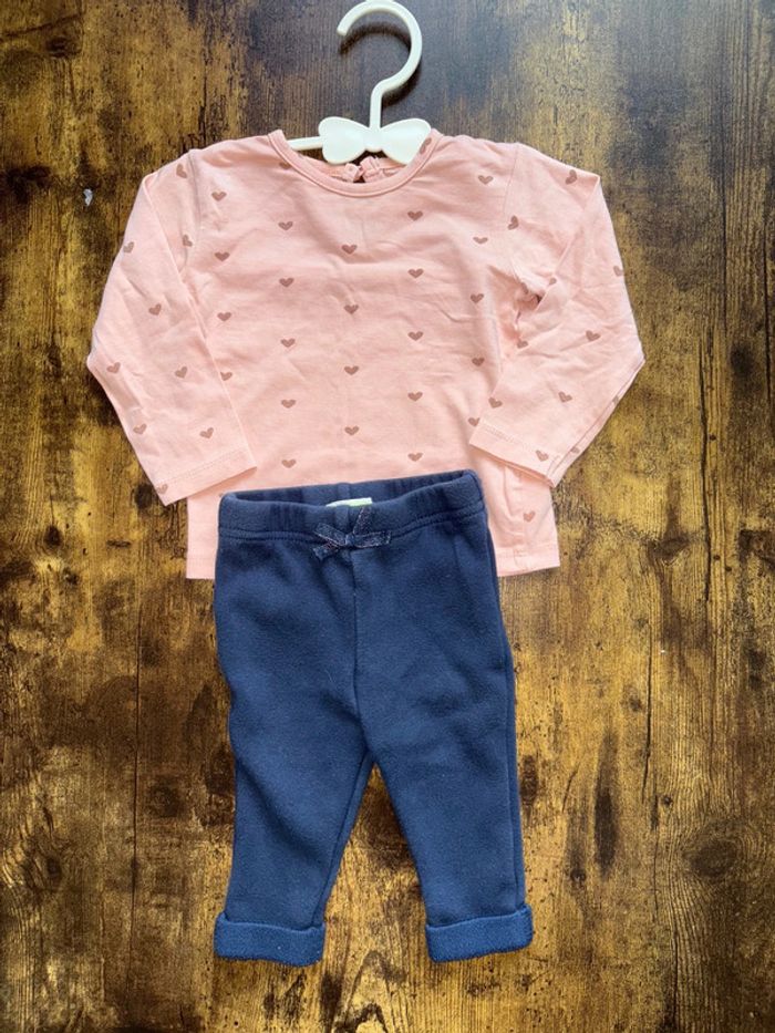 Ensemble tee shirt manches longues rose avec cœur et pantalon style jogging bleu marine Tape à l’œil Très bon état 🛍️D’autres vêtements 6m en vente: #orlanecollerie6mois