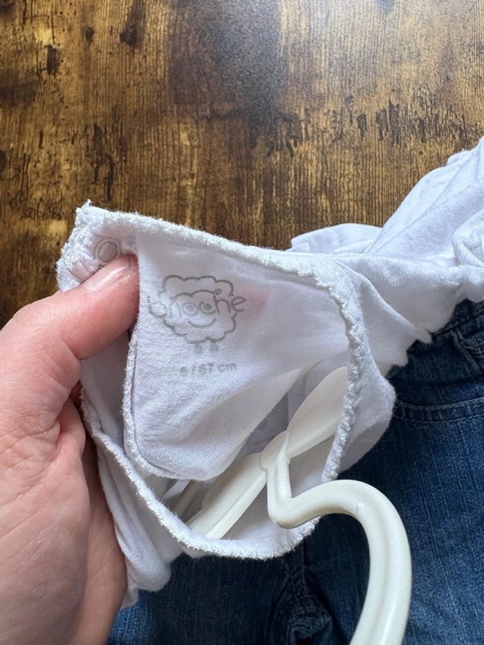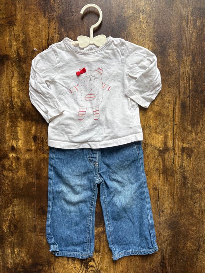 Ensemble avec jean large bleu et tee shirt manches longues Très bon état 🛍️D’autres vêtements 6m en vente : #orlanecollerie6mois