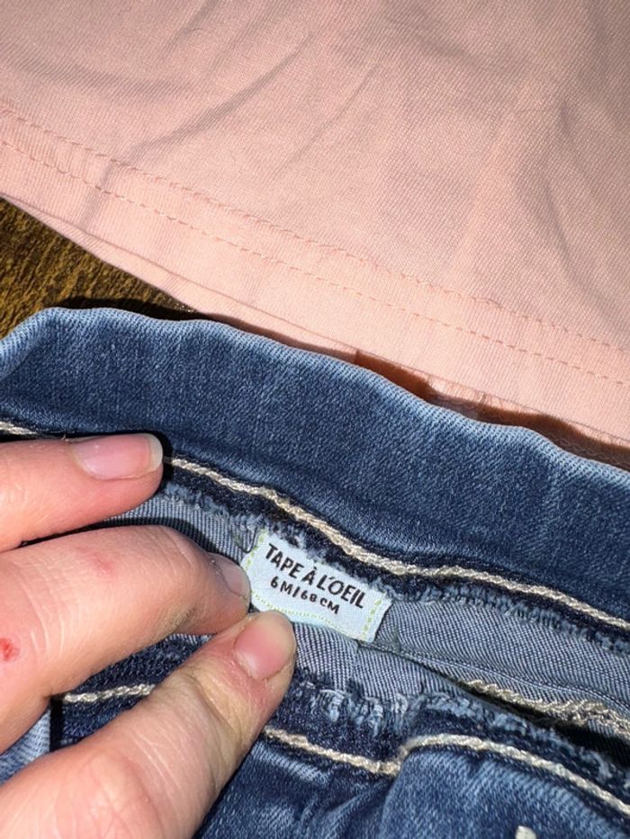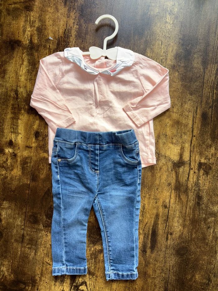 Ensemble avec legging style jean Tape à l’œil + haut rose pale avec col blanc Excellent état 🛍️D’autres vêtements 6m en vente : #orlanecollerie6mois