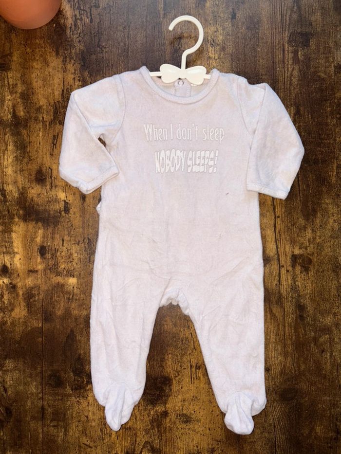 Grenouillère chaude Rose , écriture qui commence à ce décoller 🛍️D’autres vêtements 3m en vente: #orlanecollerie3mois