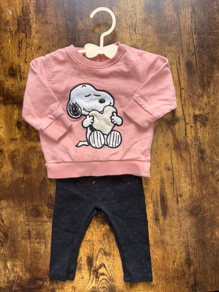 Ensemble avec Sweat Snoopy et legging noir à pois doré Kiabi Excellent état 🛍️D’autres vêtements 6m en vente: #orlanecollerie6mois