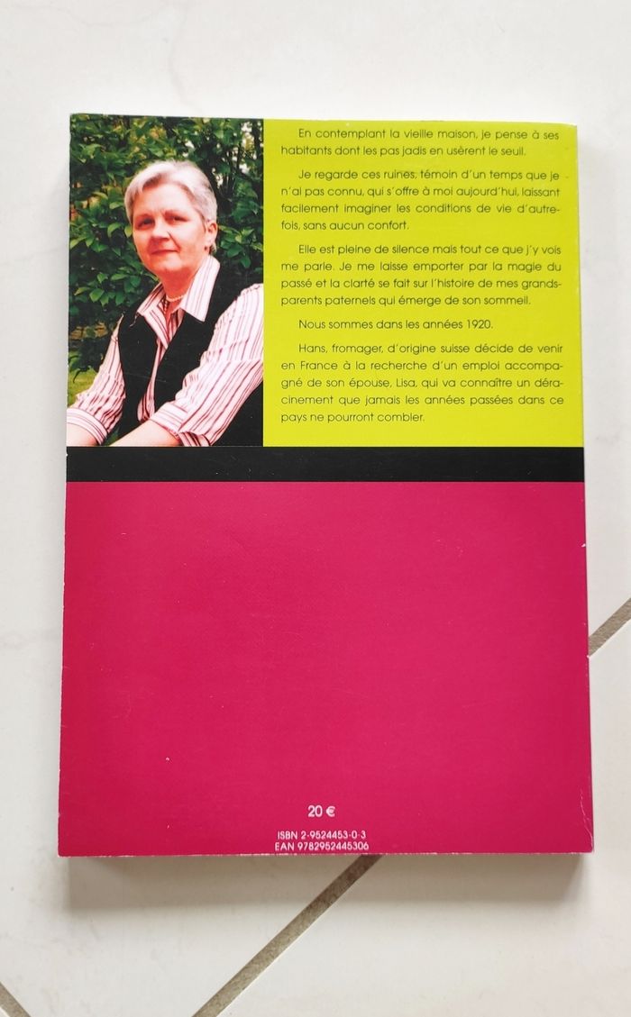 En contemplant la vieille maison, je pense à ses habitants dont les pas jadis en usèrent le seuil. Je regarde ces ruines, témoin d'un temps que je n'ai pas connu, qui s'offre à mal aujourd'hul laissant facilement imaginer les conditions de vie d'autre-fois, sans aucun confort Elle est pleine de silence mais tout ce que j'y vois me parle. Je me laisse emporter par la magie du passé et la clarté se fait sur l'histoire de mes grands-parents paternels qui émerge de son sommeil. Nous sommes dans les années 1920. Hans, fromager, d'origine suisse décide de venir en France à la recherche d'un emploi accompa gné de son épouse, Lisa, qui va connaître un déracinement que jamais les années passées dans ce pays ne pourront combler. Livre rare.