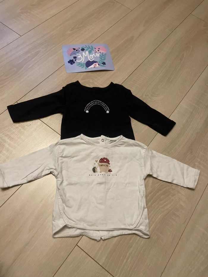 Lot de deux t-shirt manches longues 3 mois Kiabi - photo numéro 1
