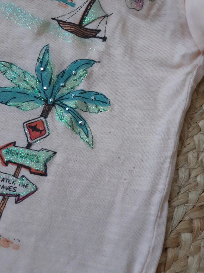 Tshirt Franges Motif fleurs hawaïennes, palmier, bateau... Petites tâches voir photo #anthonyagnes_fille5A