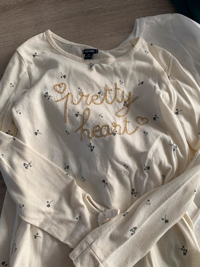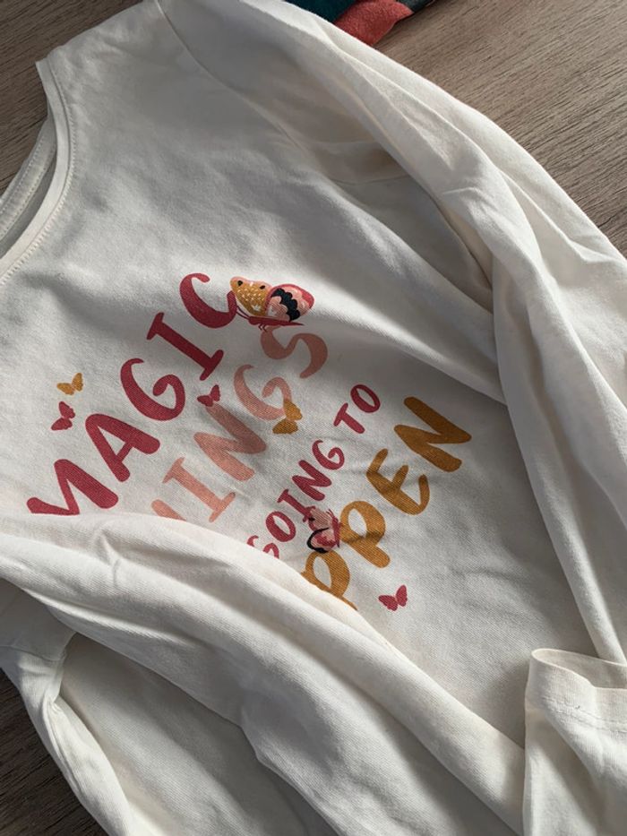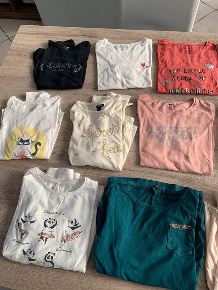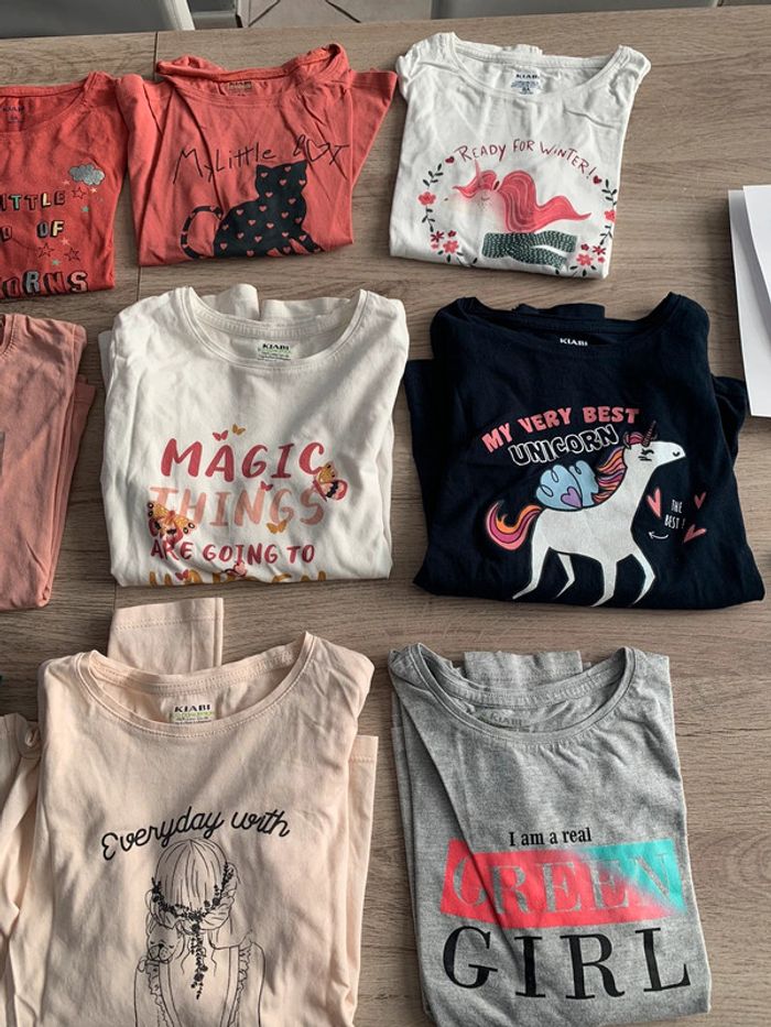 Lot 14 maillots kiabi 2 offerts car défaut le reste tbe Certains jamais mis Celui avec les fleurs bouloche plus tache à la manche Et celui avec écriture magic idem tache à la manche voir photo #8ansju59119