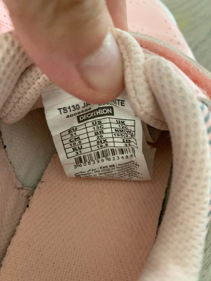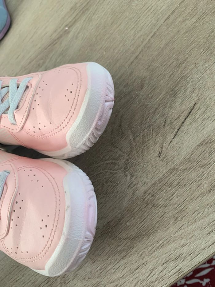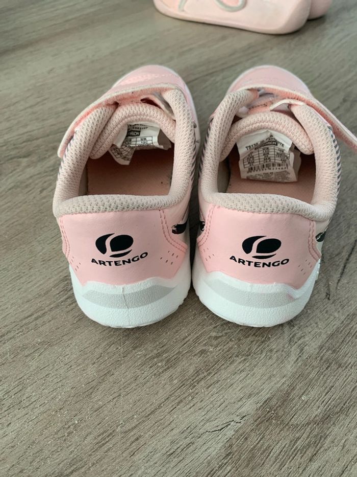 Basket Artengo, comme neuf le seul défaut est sur la semelle, un peu de Rose du revêtement de sol ça reste discret. Utiliser uniquement en salle intérieur pour le sport à l’école. #chaussuresju59119