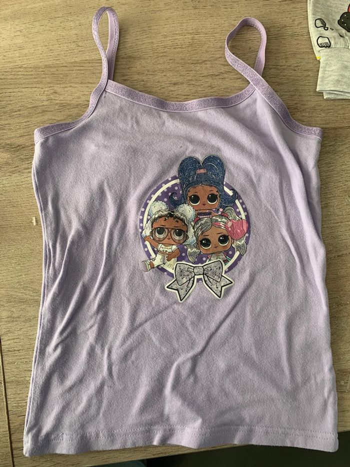 Débardeur poupée lol Note bon état car tache au dessus du dessin qui ne part pas 6/8ans mais équivaut plus à un 7 ans.. #6ansju59119 #7ansju59119 #8ansju59119